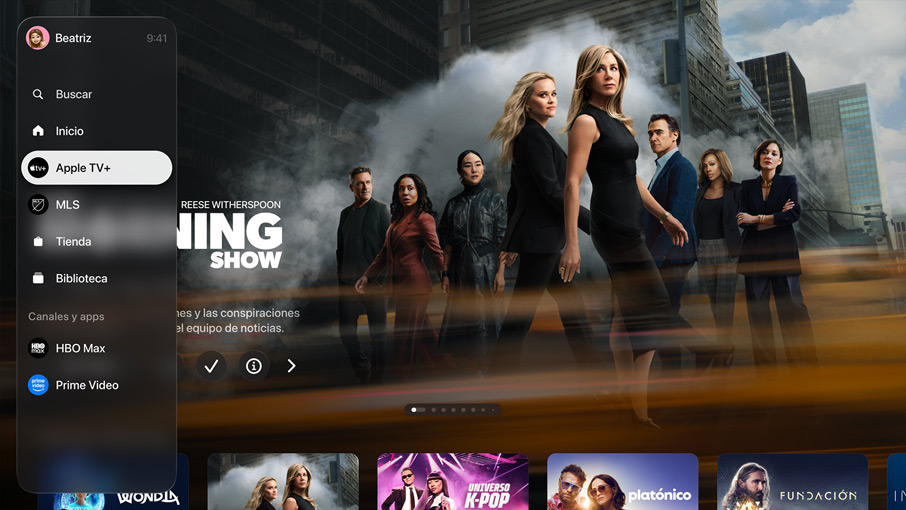El Apple TV 4K te ofrece los servicios de Apple y tus apps de streaming con una calidad de imagen y sonido que es ciencia ficción. Disfruta de llamadas FaceTime en la tele1 para hablar con tu gente sin moverte del sofá. Convierte tu iPhone en un micrófono con el modo Canta en Apple Music. Y gracias a la perfecta interacción de tus dispositivos y accesorios de domótica,2 tendrás todo lo que te encanta de Apple con el nuevo diseño Liquid Glass de tvOS.