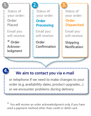 To view the most up-to-date information on your order or track your delivery, visit our Self Service website. If you are paying by credit card, you will also be able to amend your order details here. Modifyable details are marked with an ‘edit’ button. We will also send you an email once your order has been accepted and once it has shipped, containing estimated availaility and delivery times.