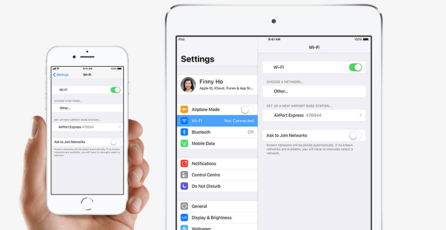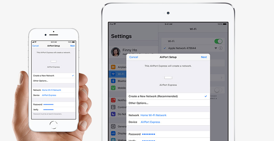 With AirPort Express, getting your new Wi-Fi network up and running takes less time — and less effort — than making a cup of coffee. That’s because a setup assistant is built into iOS and into AirPort Utility for OS X. And if you use a Windows PC, you can download AirPort Utility for free. As soon as you plug in your AirPort Express Base Station and connect it to your DSL or cable modem, you can follow the simple instructions on your computer or iOS device. There are no complicated steps to follow and there’s no obscure terminology to learn. The setup assistant does all the work, so you don’t have to.