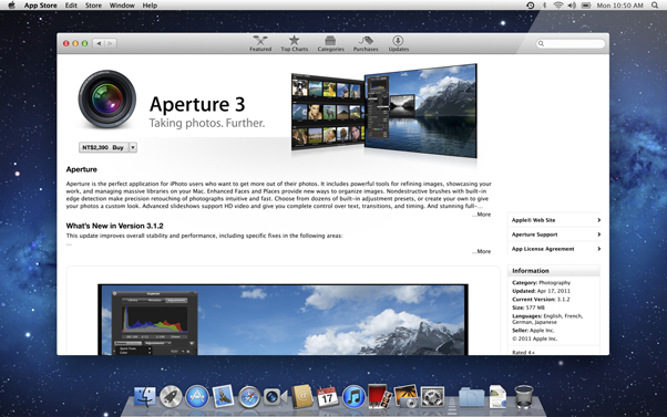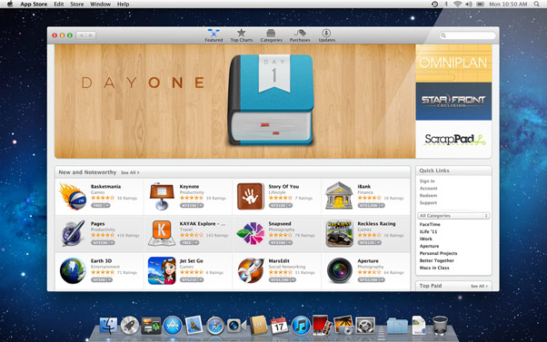 Mac App Store 正如同 iPad、iPhone 及 iPod touch 上的 App Store。你能輕鬆尋找並下載專爲 Mac 打造的應用程式,一如你透過 iPad 訂閱喜愛的雜誌,或為 iPod touch 加裝新遊戲一樣簡單。你可依類別瀏覽 Mac 應用程式,如遊戲、生產力工具、音樂以及更多項目,或者,你也能快速搜尋特定的應用程式。閱讀開發人員提供的說明,以及使用者評論,或瀏覽各種程式的螢幕快照。找到喜歡的應用程式,按一下即可購買。不論來者何人,所為何事,在 Mac App Store 都能找到適用的應用程式。以下是我們最喜愛的部份程式精選。