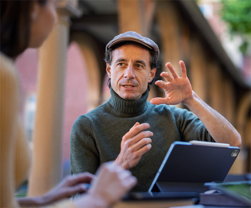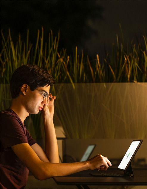Samuel macht einen Doppelabschluss in Natur‑ und Wirtschaftswissenschaften. Das iPad hat verändert, wie er ans Lernen herangeht: mit Neugier und Kreativität.