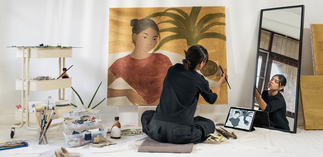 So nützt Bim, eine Kunststudentin im vierten Studienjahr, das iPad Pro mit Apple Pencil, um ihre kreativen Ideen zu verwirklichen.