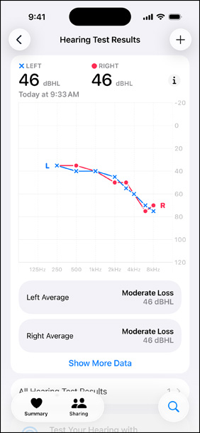 Поверително, сигурно и лесно за управление. Всички данни от Тест на слуха се съхраняват поверително и сигурно в приложението Здраве на устройството ти. Можеш да повториш теста, когато пожелаеш, да проследяваш слуха си във времето, да изтеглиш резултатите от теста и да прочетеш полезни статии за здравето на слуха.