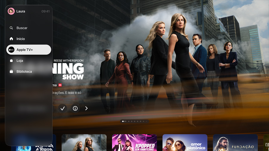 A Apple TV 4K une seus serviços Apple favoritos a todos os apps de streaming de que você mais gosta. Tudo na mais alta qualidade de áudio e vídeo graças ao desempenho extraordinário do chip A15 Bionic. Com o FaceTime na TV1, você tem um jeito de trazer as pessoas que ama para conversar na sala. E, com a interação total com aparelhos e acessórios inteligentes, controla a casa sem sair do sofá2. É a experiência Apple que você adora, numa versão digna de cinema.