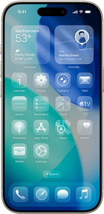 Liquid Glass spojuje optické vlastnosti skla s vizuální plynulostí a dává nezaměnitelný styl zamknuté obrazovce, ploše, Ovládacímu centru, aplikacím i dalším prvkům.