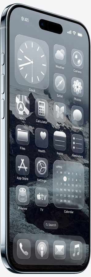 Det nye iOS-design reflekterer og bryder det bagvedliggende i realtid og tilpasser sig dynamisk til indholdet på tværs af dine apps og enheder.
