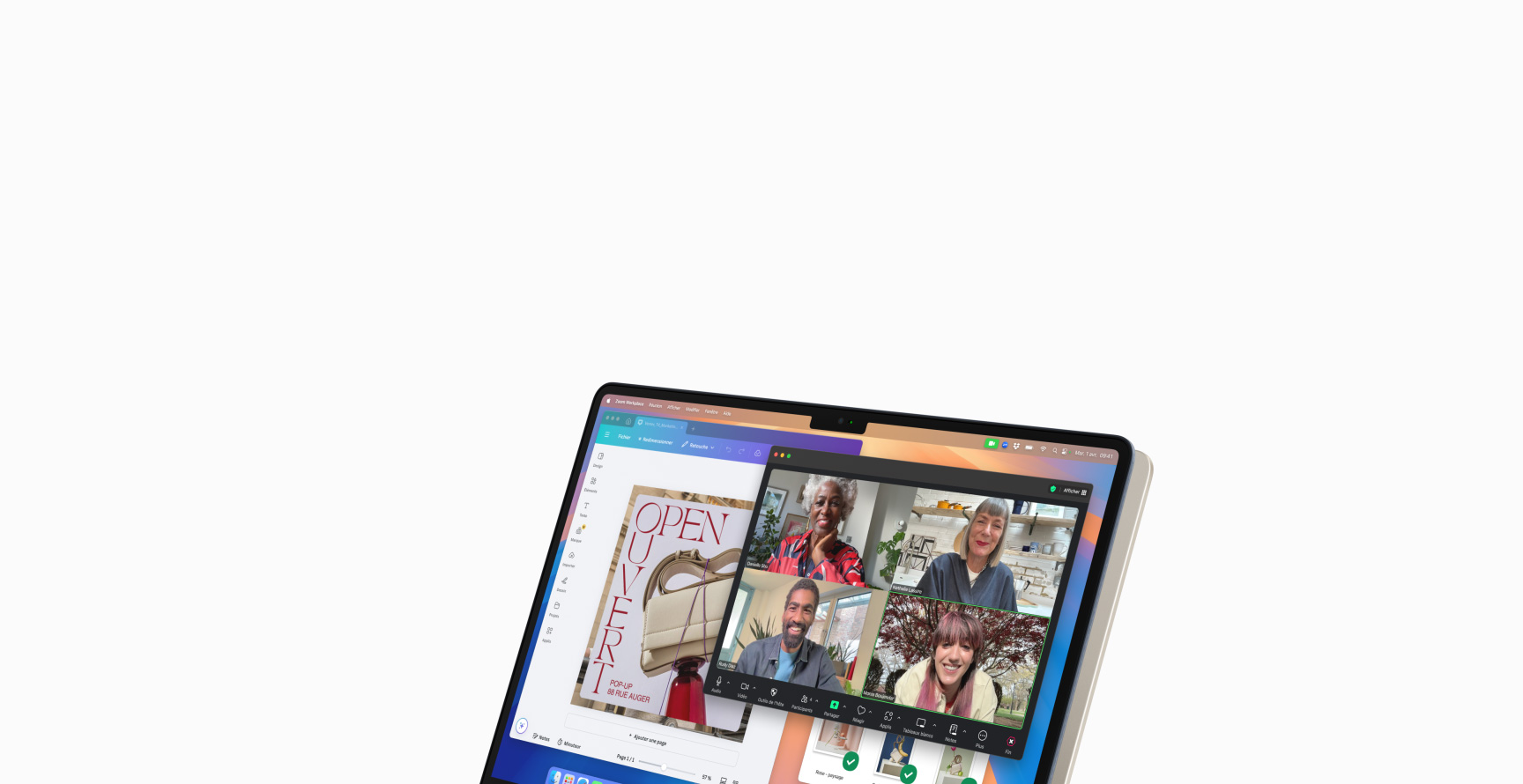 Le MacBook Air 13 pouces atteint des sommets en matière de portabilité. Et le modèle 15 pouces intègre un écran plus grand pour faire plus de choses à la fois3.