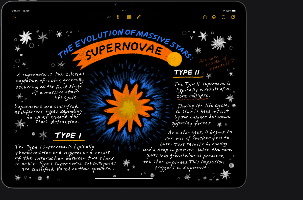 Apple Pencil sets the standard for how drawing, painting, handwriting, and note-taking should feel — intuitive, precise, and magical. All with pixel‑perfect precision, low latency, tilt sensitivity, and support for palm rejection. And Apple Pencil Pro adds even more capabilities to bring your ideas to life like never before.3