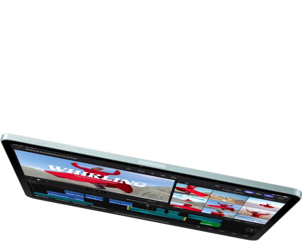 iPad Air in landscape orientation, showcasing video editing in Final Cut Pro