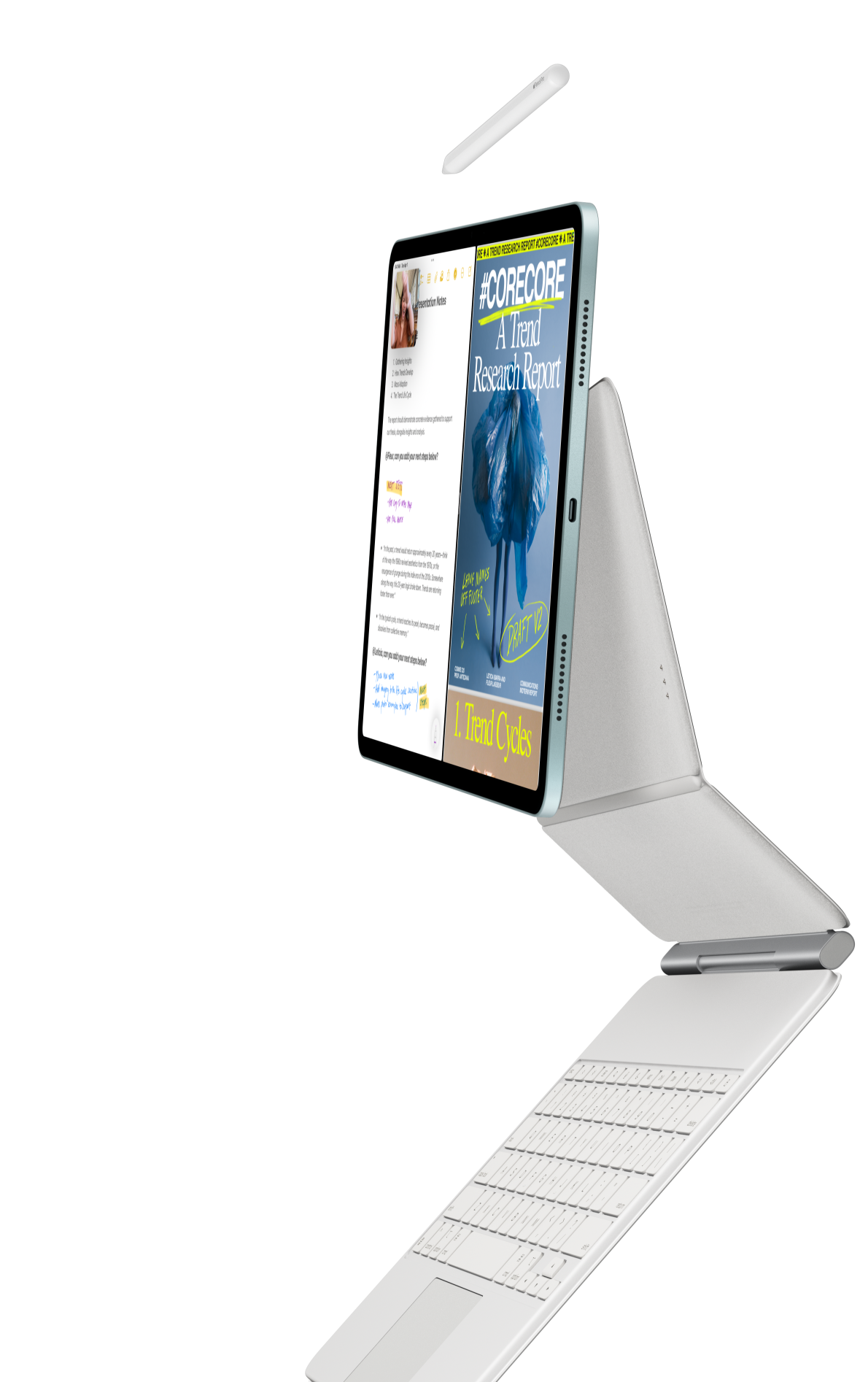 Magic Keyboard is the perfect companion for iPad Air. It delivers an amazing typing experience and a trackpad for precision tasks in a sleek, portable design. The keyboard includes a 14‑key function row, a USB-C connector for pass‑through charging, and front and back protection for your iPad Air. The floating cantilever design smoothly adjusts to multiple viewing angles, and a large glass trackpad expands how you can work with iPadOS.3