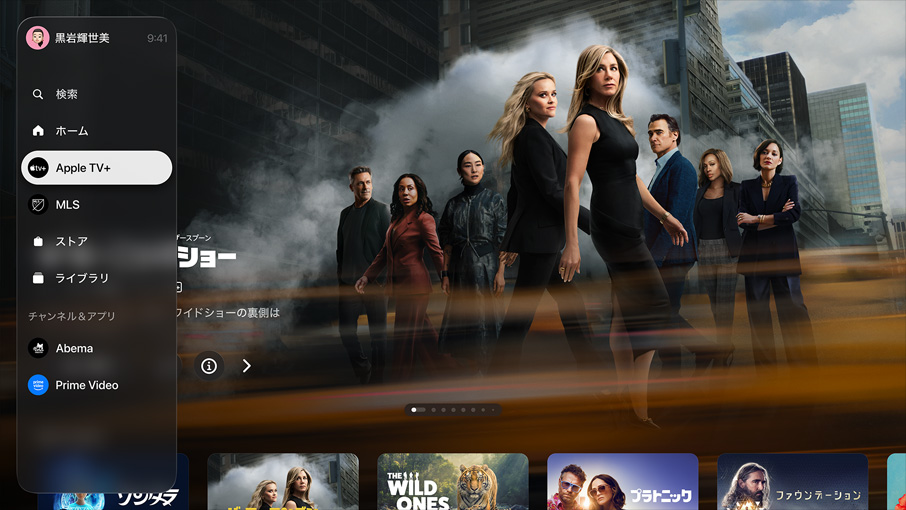 Apple TV 4Kのホーム画面にApple TV+の番組「ワンダラ」が表示されている