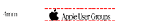ほとんどの場合、水平方向に展開したアップルユーザグループのロゴの最低サイズは、アップルマークの上端から下端までの距離で4mm となります。