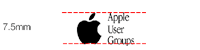 ほとんどの場合、垂直方向に展開したアップルユーザグループのロゴの最低サイズは、「Apple」の文字の上端から「Groups」の文字のベースラインまでの距離で7.5mmとなります。