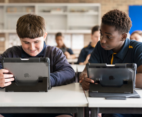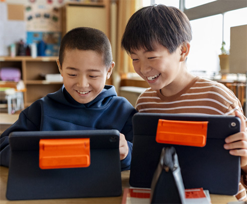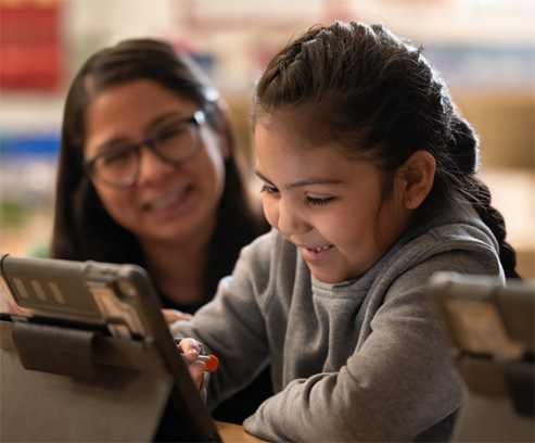 Một học sinh ở Hệ Thống Trường Độc Lập Richardson thể hiện cảm xúc về một bài học lấy cảm hứng từ Apple Learning Coach. -