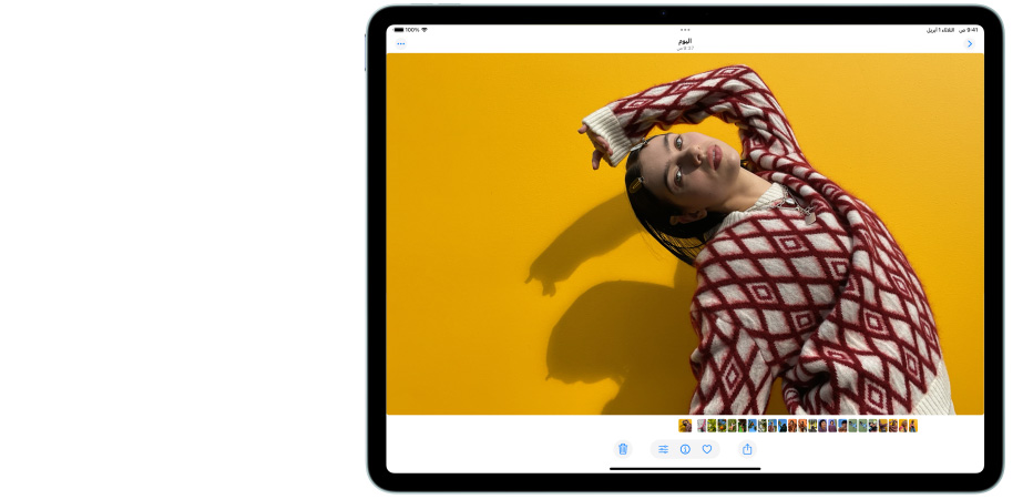 اختر ما يناسبك من بين iPad Air‏ مقاس 11 إنش ومقاس 13 إنش، يتألق كلاهما بشاشة ريتنا ليكويد خلابة فائقة الوضوح تحول كل ما في بالك إلى واقع ملموس أمامك. وتمنحك تجربة مشاهدة مذهلة بروعتها ومدهشة بسرعة استجابتها ورائعة بدقة ألوانها.