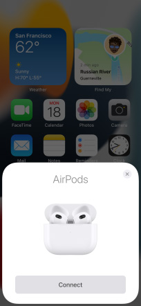 Place AirPods near your iPhone or iPad and tap Connect to pair with every device in your iCloud account. If you're playing music on your Mac, you’ll be able to answer a call on your iPhone — without having to switch devices.7