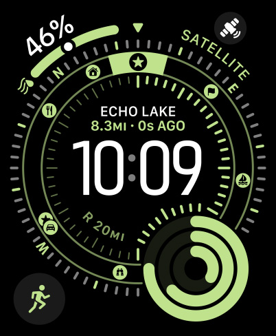 If you need to attract attention when you’re lost or injured, hold down the Action button to activate a siren that can be heard up to 600 feet or 180 meters away.