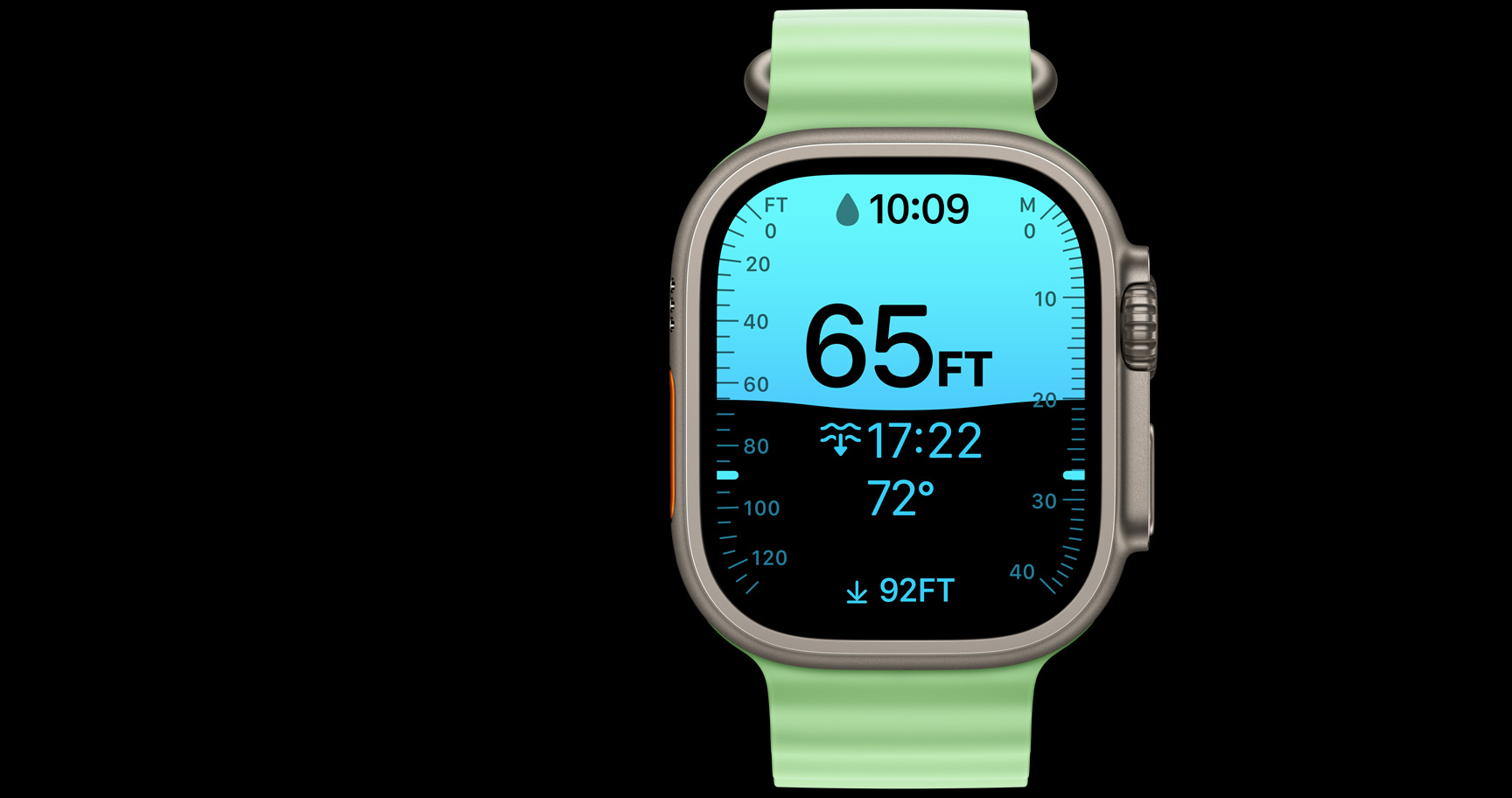 Designed with Huish Outdoors, the Oceanic+ app turns Ultra 3 into a fully capable dive computer running a Bühlmann decompression algorithm.15 Turn the Digital Crown to get useful data at a glance. Equipped with all the safety warnings you’d expect, the app constantly calculates and monitors your dive parameters.