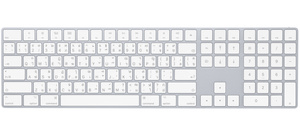 1. Testing conducted by Apple in April 2017 using preproduction Magic Keyboard devices, firmware and software with shipping iMac systems. Testing consisted of full battery discharge while engaging the device on a paired iMac using automated equipment. Battery life depends on device settings, usage and other factors.