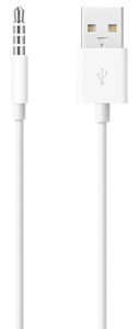 Dois cabos são fornecidos, ambos com um conector de 3,5 mm em uma extremidade e um conector USB na outra. O cabo mais curto tem o mesmo comprimento do cabo USB fornecido com o iPod shuffle. O cabo mais longo é perfeito para conectar o iPod shuffle à parte traseira do computador de mesa ou a um carregador conectado à tomada de parede.