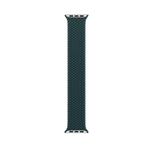 As pulseiras loop solo trançadas têm um design elástico único, muito confortável e fácil de colocar e tirar do pulso. Cada uma delas é feita com 16 mil filamentos de poliéster reciclado entrelaçados com linhas de silicone ultrafinas por máquinas modernas e precisas. Depois, são cortadas a laser para obter o tamanho exato. A estrutura texturizada é suave ao toque e resistente ao suor e à água.