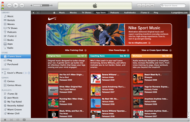 La section de musique Nike Sport dans l’iTunes Store vous offre un vaste choix de musique conçue pour vos séances d’entraînement, créée par des athlètes et des entraîneurs reconnus. Vous y trouverez des programmes conçus spécialement pour la Trousse Nike + iPod. Que vous préfériez des programmes par durée ou par distance, chacun d’entre eux comprend des instructions, des encouragements et des astuces de mise en forme sur une musique entraînante.