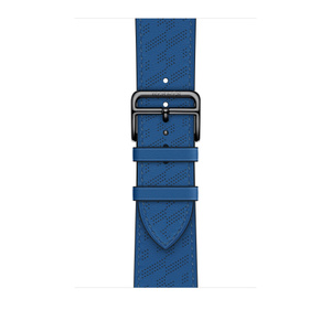 3. Apple Watch Hermès - Bracelet Simple Tour H Diagonal en cuir Swift Bleu de France 45 mm