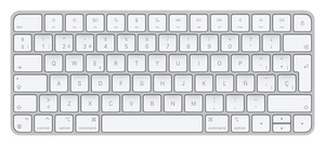 El Magic Keyboard te permite escribir con total precisión y comodidad. Además, es inalámbrico y recargable, e incorpora una batería integrada de gran autonomía, así podrás olvidarte de cargar el teclado durante un mes o más.¹ Se enlaza de forma automática al Mac para que puedas usarlo enseguida. También incluye un cable de tejido trenzado de USB‑C a Lightning para enlazarlo y cargarlo a través del puerto USB‑C del Mac.