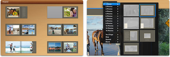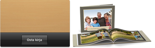 Valitse kirjallesi teema karusellia pyörittämällä. Voit valita tässä vaiheessa myös kirjan tyypin, koon ja värin. Osoita seuraavaksi Luo, ja iPhoto sijoittaa kuvasi automaattisesti kirjaan.