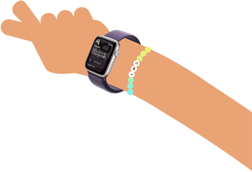 Touchez, balayez ou dictez dans l’app Messages pour écrire un message. Désormais, les arrière-plans personnalisés des conversations sur iPhone s’affichent aussi sur l’Apple Watch, pour refléter le style unique de chacune de vos discussions de groupe.