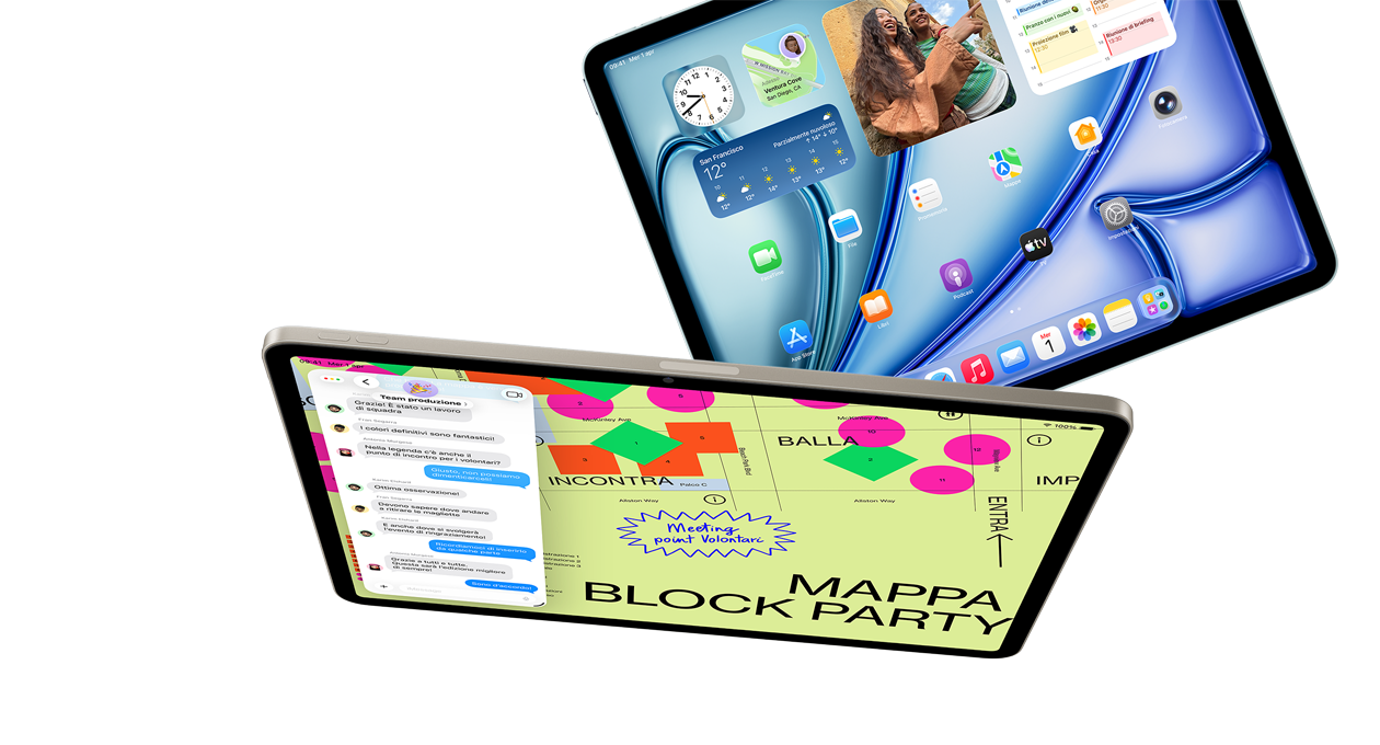 Il velocissimo chip M4 ha il 50% di memoria unificata in più, così il tuo iPad Air sarà un fulmine in tutto. È un concentrato di potenza al servizio dell’intelligenza artificiale: le funzioni che usi ogni giorno ti aiuteranno a fare quello che vuoi in modo ancora più rapido ed efficiente. E l’architettura della GPU ti offre prestazioni grafiche fenomenali per lavorare, guardare video in streaming, creare o giocare. In più, ha una batteria che dura tutto il giorno: un’efficienza niente male, no?4