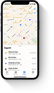 È facilissimo tenere d’occhio le tue cose con AirTag. Agganciane uno alle chiavi e infilane un altro nello zaino: appariranno nell’app Dov’è e potrai localizzarli ogni volta che serve. Con AirTag, hai tutto sotto controllo.
