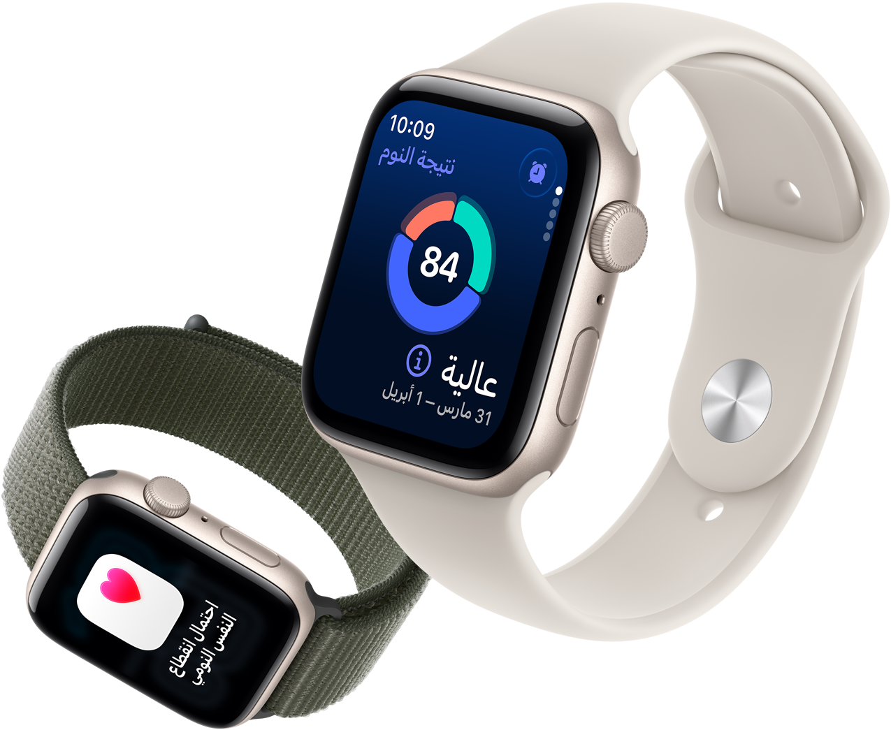 اطّلع بسرعة على بياناتك الصحية الليلية مباشرة من معصمك، بما فيها معدل نبض القلب ومعدل التنفس ودرجة حرارة المعصم ومدة النوم. وسيصلك إشعار في حال خرج أحد هذه القياسات عن نطاقه الاعتيادي.8