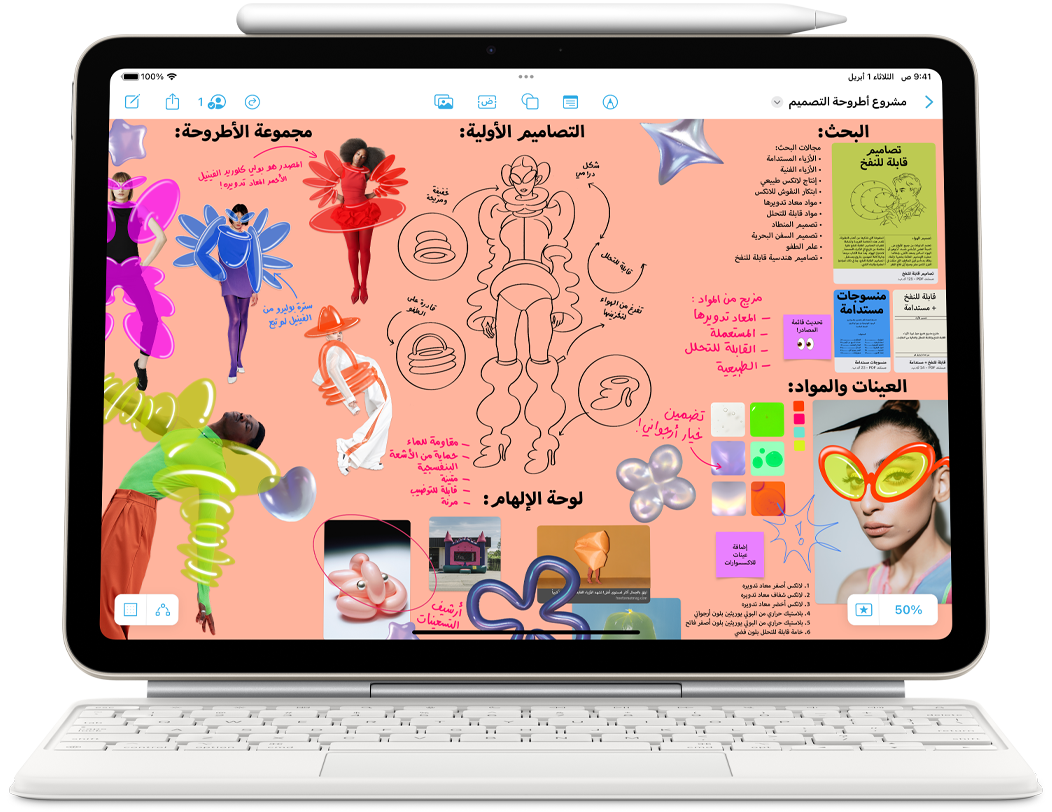 جهاز iPad Air يتصل بلوحة مفاتيح ماجيك وقلم Apple Pro