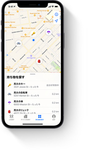 AirTagは、自分の持ち物を見つける簡単な方法。鍵に付けたり、バッグに入れておくだけで、それらを「探す」アプリでいつでも探知できるので安心です。