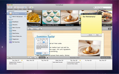 이 영리한 앱으로 좋아하는 요리법을 보고, 저장하고, 프린트하고, 이메일로도 보내보세요. YummySoup!은 클릭 한번으로 여러 인기 요리 사이트의 레시피를 가져오는데, 거기에는 MobileMe 계정을 통해 최고의 요리를 공유할 수 있는 Recipecasts도 포함되어 있습니다.