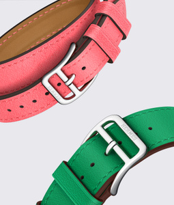 Hermès 특유의 정교한 에지 페인팅 마감에 대한 오마주로 과감한 대비 색조의 테두리가 경쾌하게 느껴지는 우아하고 얇은 밴드죠.