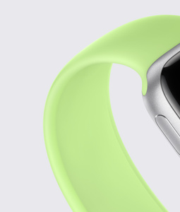 신축성 있는 원사와 실리콘 스레드를 엮은 소재의 밴드. 궁극의 편안함을 위해 버클이나 잠금장치 없는 디자인. 각주 *