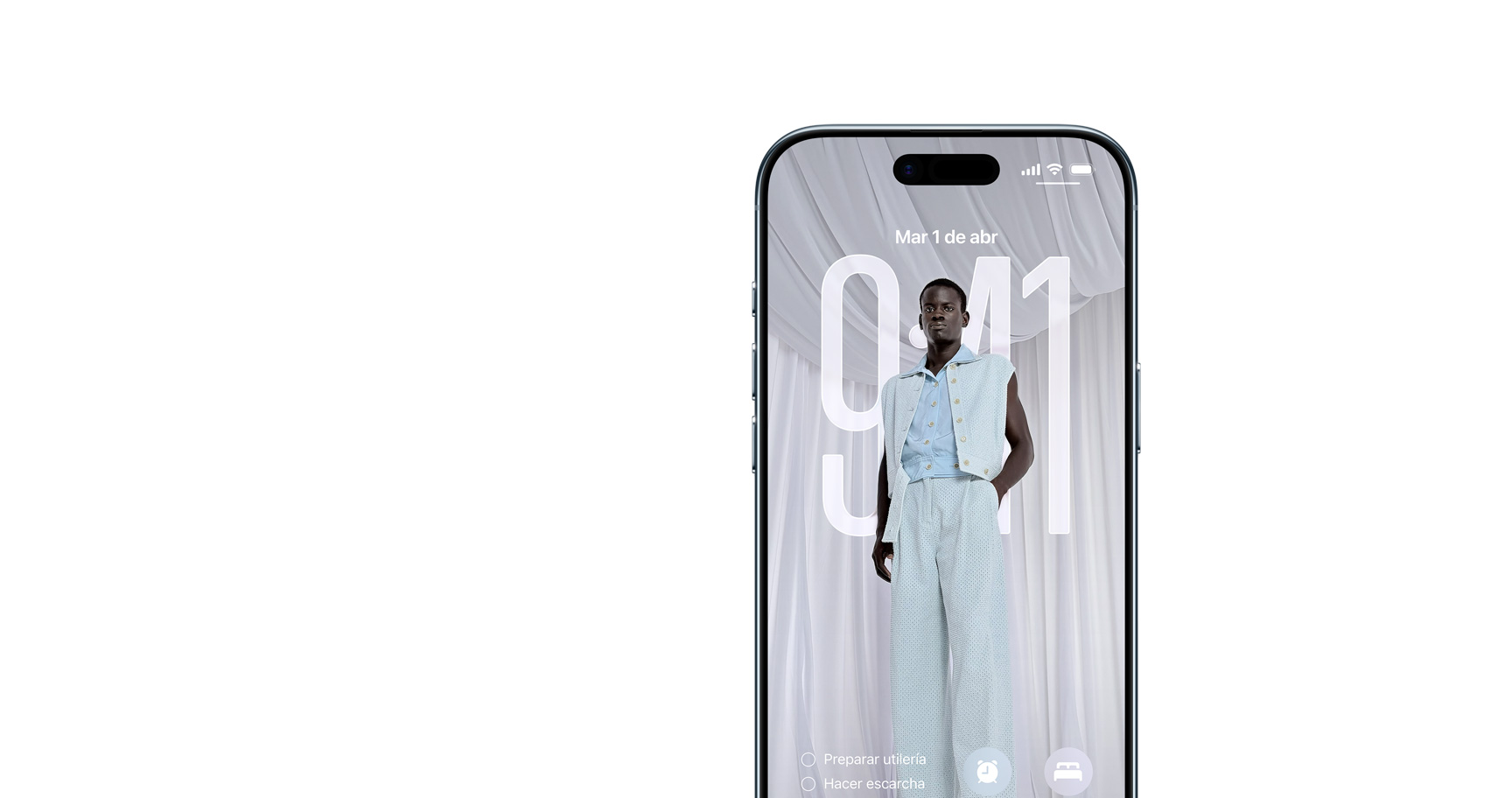 La hora se adapta a tu foto de fondo y a las notificaciones, manteniendo siempre el enfoque en el sujeto. Al mover tu iPhone, la foto cobra vida gracias a un nuevo efecto 3D.15