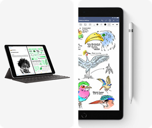 Tegn, ta notater og signer dokumenter med Apple Pencil. Og rediger dokumenter, skriv e‑post, lag regneark og mye mer med et tastatur.