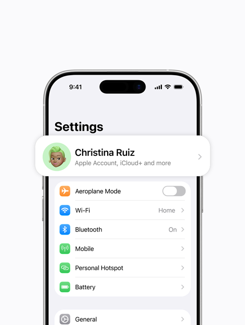 You’ll need to set up your group as the Family Organiser, and then invite other members to join. Get started by opening Settings. Tap your name, then tap Family and follow the onscreen prompts to invite family members.