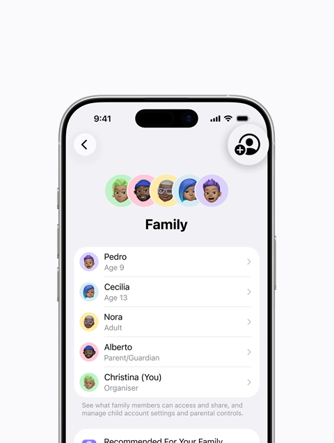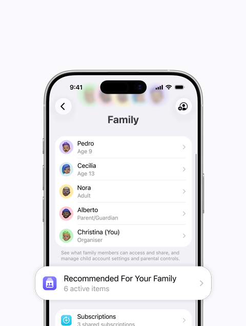 You can get tips and suggestions on getting the most out of family features. Open Settings, tap your name, tap Family, then tap Recommended for your Family.