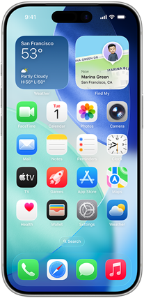 As qualidades óticas do vidro e a fluidez única que a Apple aplica no Liquid Glass trazem um novo e expressivo design ao Ecrã bloqueado, Ecrã principal, Central de controlo, apps e muito mais.