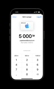 Sätt in pengar på ditt Apple-konto när som helst, inget presentkort behövs. Det är snabbt, säkert och enkelt att göra direkt från din enhet.