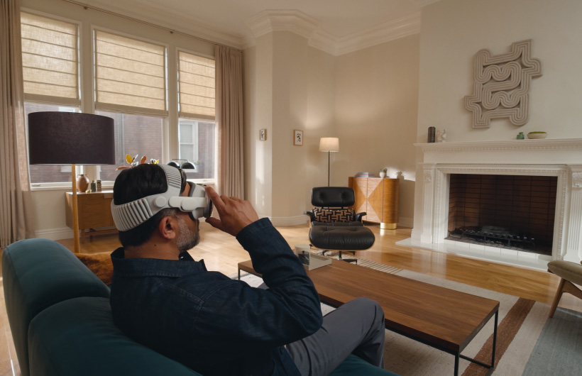 In visionOS, apps fill the space around you, beyond the boundaries of a display. They move anywhere, scale to the perfect size, react to the lighting in your room and even cast shadows.