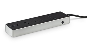 Generously spaced 90-degree outlets accommodate large power adapters
