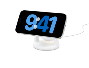 The Anker MagGo Wireless Charger (Stand with Spotlight) delivers a safe, fast, and luminous charging experience. It supports up to 15W of Qi2-certified fast charging, specifically designed for iPhone. This charger also includes a built-in light, which adds practicality for home use and introduces a warm ambiance to your bedroom. The adjustable barrel allows you to charge your phone vertically or horizontally, providing flexibility in viewing angles.