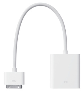 The Apple VGA Adapter connects to your iPad, iPhone 4, iPhone 4S, iPod touch (4th generation), iPad Dock, or Universal Dock via the dock connector and to your projector or display using the VGA adapter.