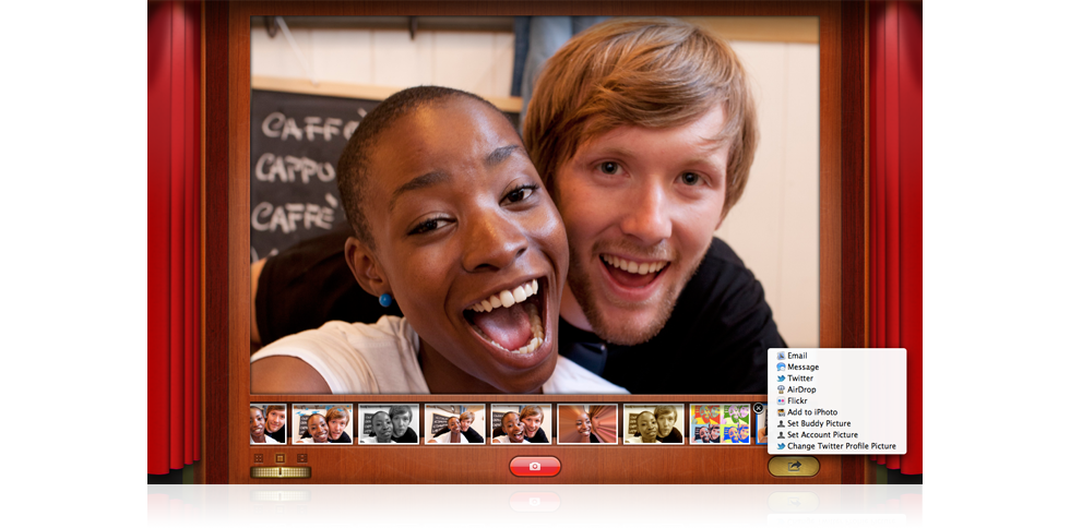 使用 Photo Booth 中的分享按鈕來 Tweet 你的照片,將它們發佈到 Flickr 上,
