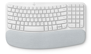 Ergonomic keyboard shaped for natural, feel-good typing with a cushioned palm rest for all-day support.